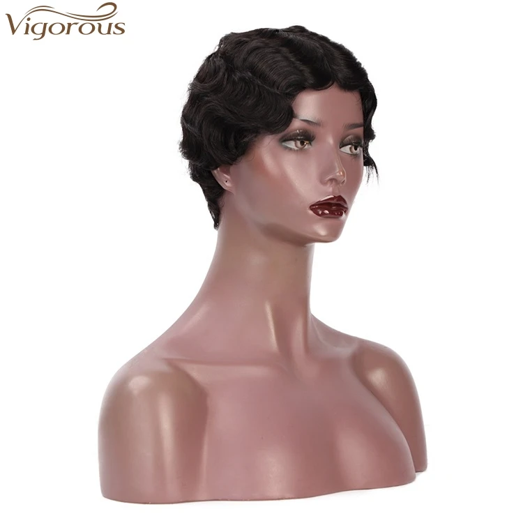 Source Vigorous Fashion Top Quality 100 Brazilian Human Hair Wig Natural Black Finger Wave Short Pixie Cut Wig On M Alibaba Com